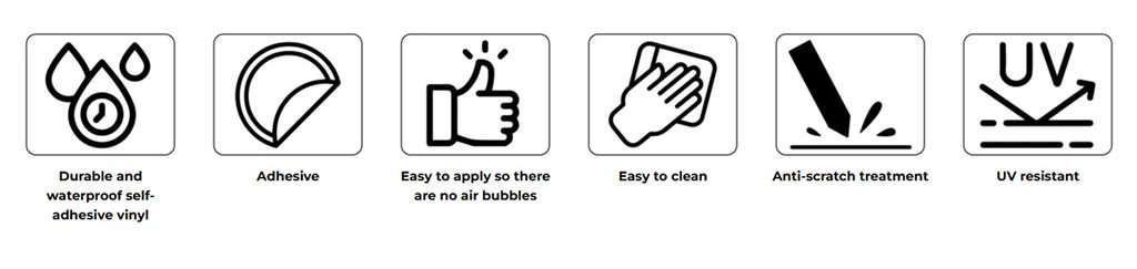 It can be installed and uninstalled easily and quickly, without leaving any type of mark, it does not scratch or come off when washed or inclement weather.