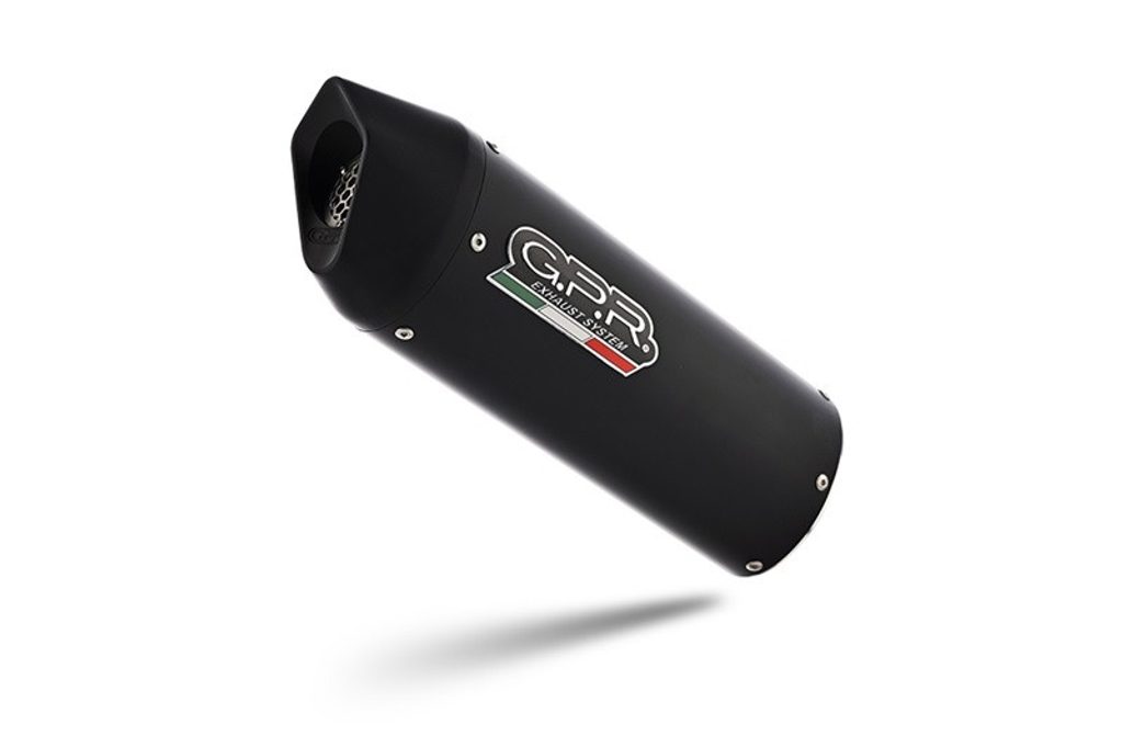 GPR's Furore Nero silencer has a black aluminum body, with avional caps made through CNC machining. It has a ceramic finish that withstands high temperatures, with an elliptical shape that measures 90mm x120mm.