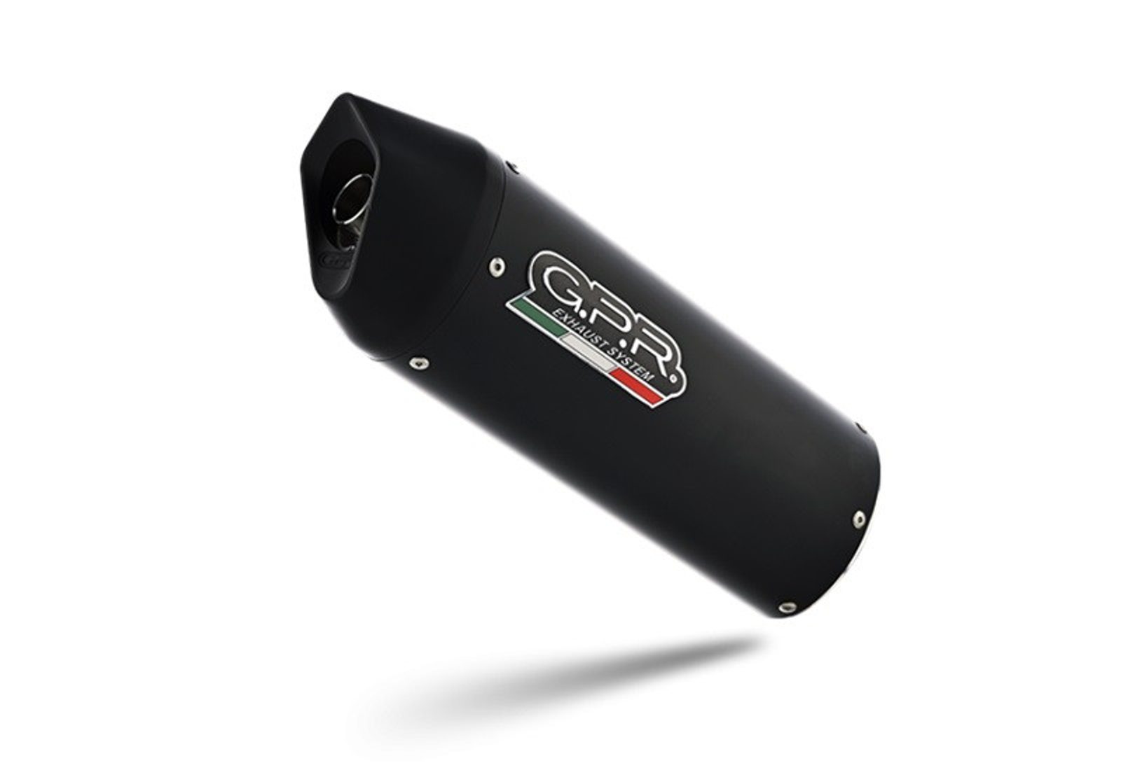 GPR's Furore Nero silencer has a black aluminum body, with avional caps made through CNC machining. It has a ceramic finish that withstands high temperatures, with an elliptical shape that measures 90mm x120mm.