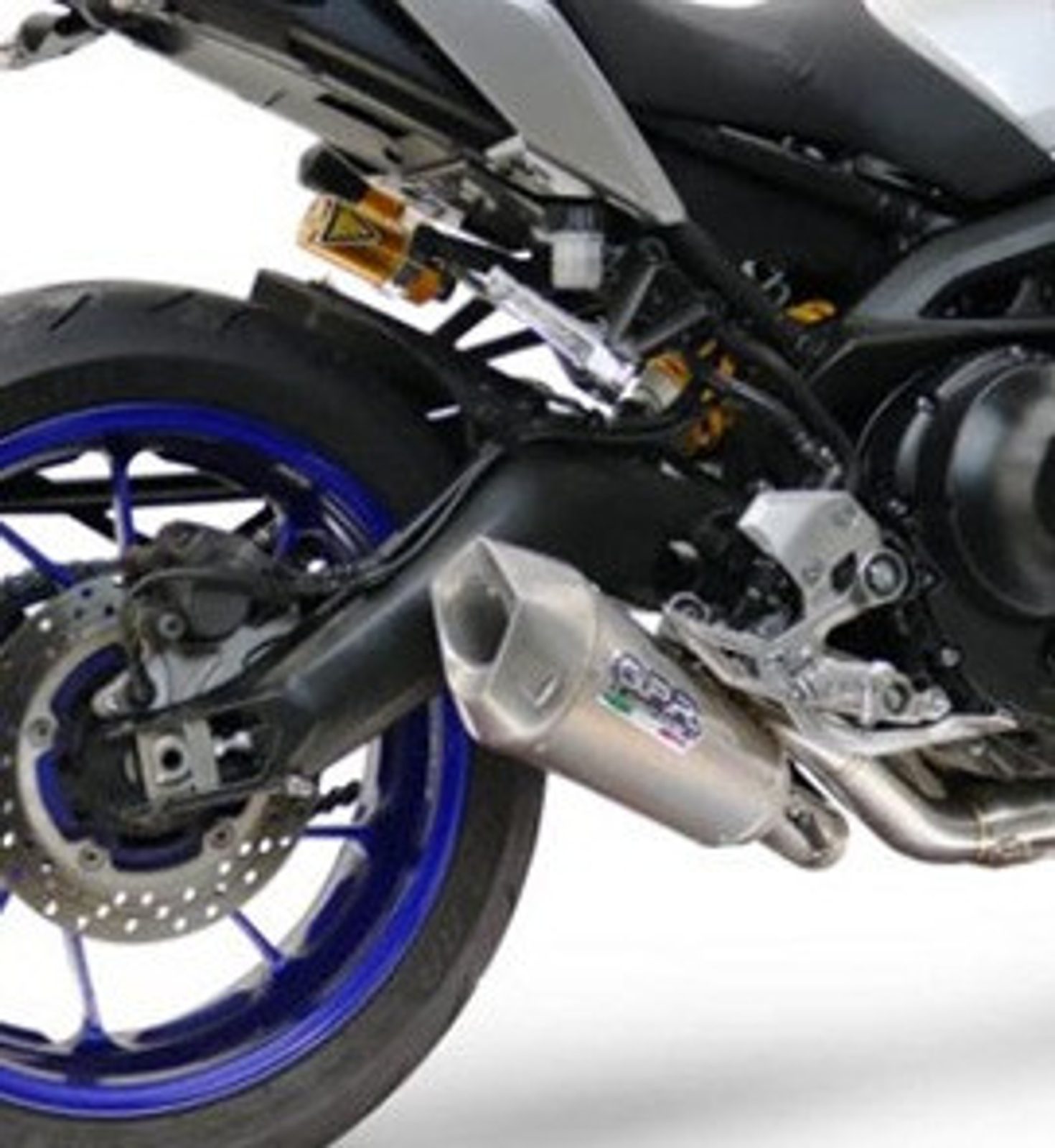 GPR's GP-Revolution, it has been created to celebrate 20 years of presence in the MotoGP world championship, in fact, the presentation of the first Grand Prix line dates back to 2005, on the occasion of the debut with Team Konica Minolta and driver Makoto Tamada and Team LCR with driver Casey Stoner. The Silencer is conical, with a special shape starting from a diameter 90mm to arriva at 130mm of circonference and lenght between 200to280mm that depend from the motorbike of destination, the muffler will be installed to the motorbike frame thanks to a special "ghost" bracket that will preserve the fantastic design. It has a sleeve made in black titanium realized with ceramic treatment for high temperatures, endcap made through CNC machining with pentagonal exit and dbkiller, the best ofoptions thanks to Made in Italy production.