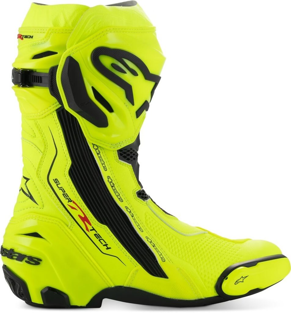 Supertech R čizme su evolucija legendarnih Alpinestarsovih trkaćih čizama i prošle su rigorozan program nadogradnji. Čizma ima novi vanjski materijal koji pruža višu razinu zaštite, fleksibilnosti, izdržljivosti i otpornosti na klizanje, kao i novu unutarnju čizmu s ažuriranom konstrukcijom za veću udobnost i amortizaciju u peti. Najbolje je upravo postalo još bolje, jer je gotovo svaka komponenta Supertech R trkaćih čizama, koje nosi impresivan niz bivših i sadašnjih prvaka, usavršena kako bi se poboljšale performanse čizama. Na temelju povratnih informacija iz poznatog trkaćeg programa tvrtke i suradnje sa svjetskim prvacima MotoGP-a i SBK-a, nove inovacije čizama uključuju redizajnirani prednji fleksibil, redizajnirani stražnji gamaš, redizajnirani gornji gamaš, novi klizač i ploču za potkoljenicu.