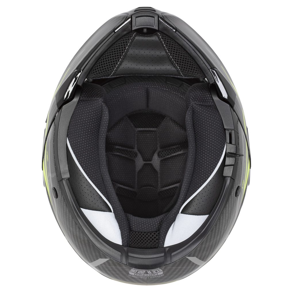 The Modulo 2.1 Plus Carbon helmet is a premium touring flip-up model with both the shell and flip-up section made from selected 3K carbon.