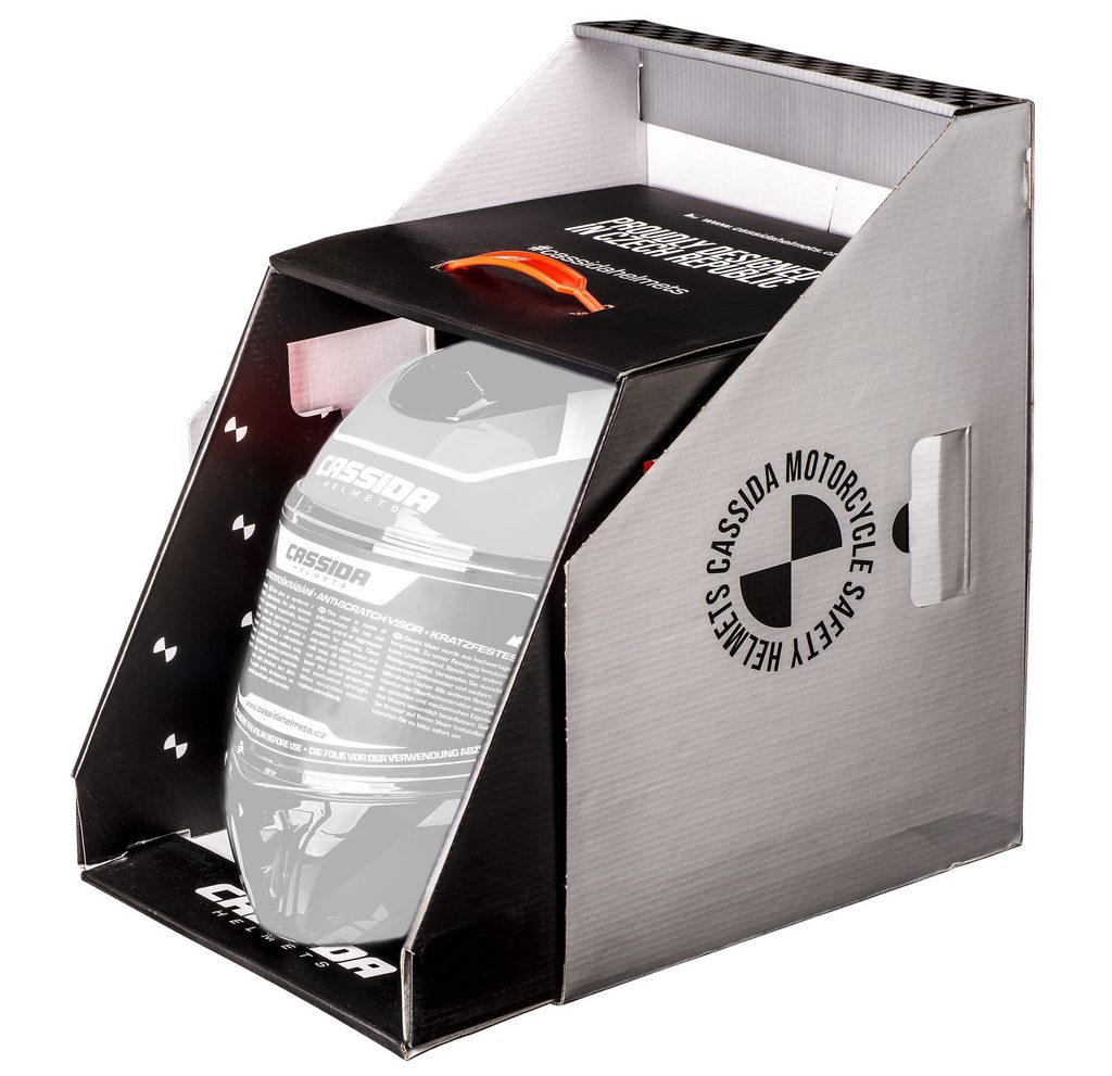 • Premium CASSIDA HELMETS packaging in the form of a two-piece box with a handle.