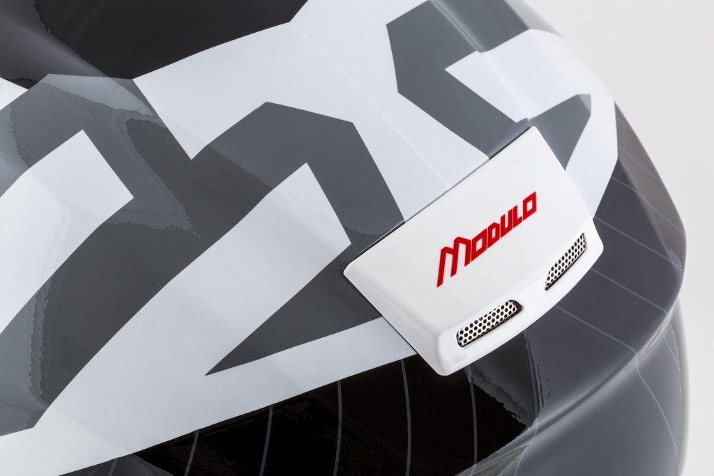 The Modulo 2.1 helmet is a touring flip-up model with a fiberglass shell and standards typical of the upper mid-range helmet category.