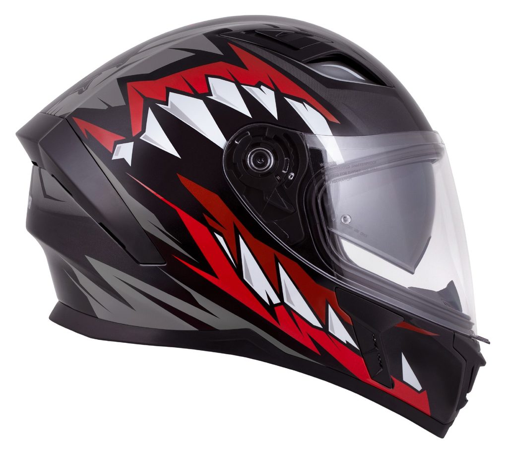 • Quick-release visor mechanism with multiple position settings and a locking tab to secure the visor in the closed position