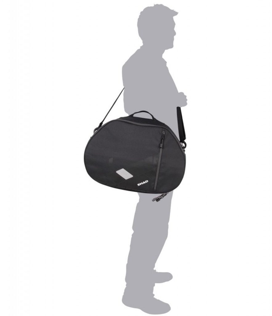 It complements the top case and can be adapted to several top and side cases. It is made in high quality materials. It is perfect to carry whatever you need in the most comfortable way. The inner bag makes carrying your belongings easier, as you can put everything inside it and then just take it out and carry it anywhere you need. It has a zipper and a front pocket, a side handle and a shoulder strap to carry it.