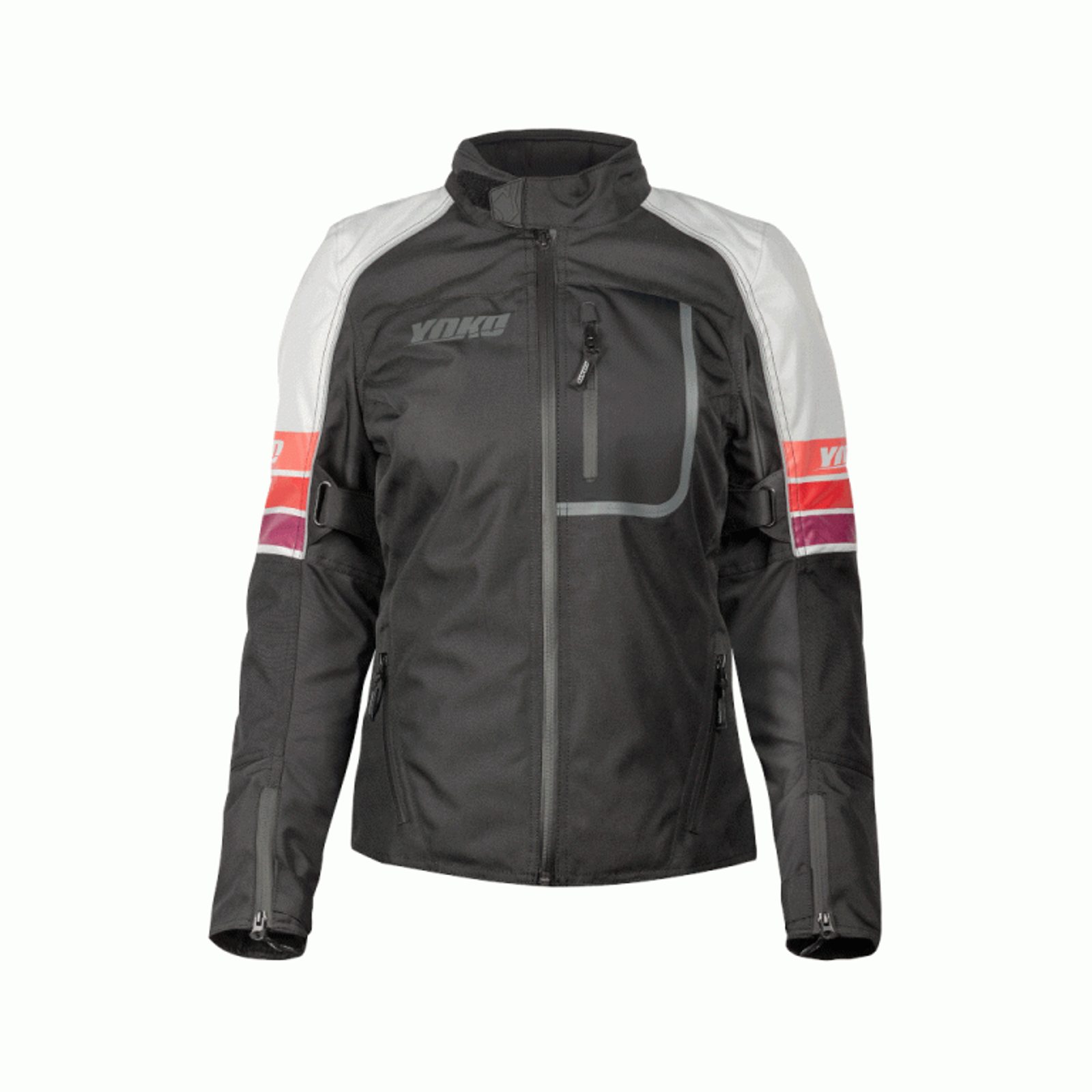 Modern women's motorcycle jacket YOKO Bulsa with an excellent cut and stylish design. It is made of (CE) certified comfortable and strong material Hydropol 600. The jacket has detachable and (CE) certified back, elbow and shoulder protectors. Strategically placed reflective elements and brightly colored panels further enhance safety. Comfort is provided by a breathable and waterproof YZ lining and a permanent ventilation hole on the back. The jacket is equipped with waterproof ESO zippers, which you will appreciate in rainy weather. Thanks to the detachable insulated lining, even cold weather will not surprise you. Thanks to two front pockets and a welded and waterproof chest pocket, the jacket provides enough space for small items such as keys, phone, wallet and more. You can attach the jacket to any motorcycle pants thanks to the zipper at the bottom. It fits best to YOKO Bulsa pants.