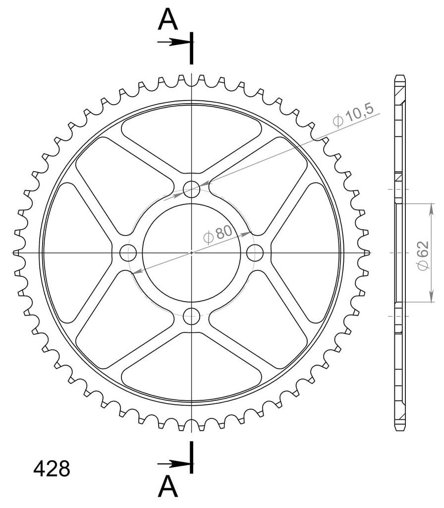 Stronger teeth for up to 10% longer chainkit lifetime. Rear sprocket 54z, chain 428. Više informacija