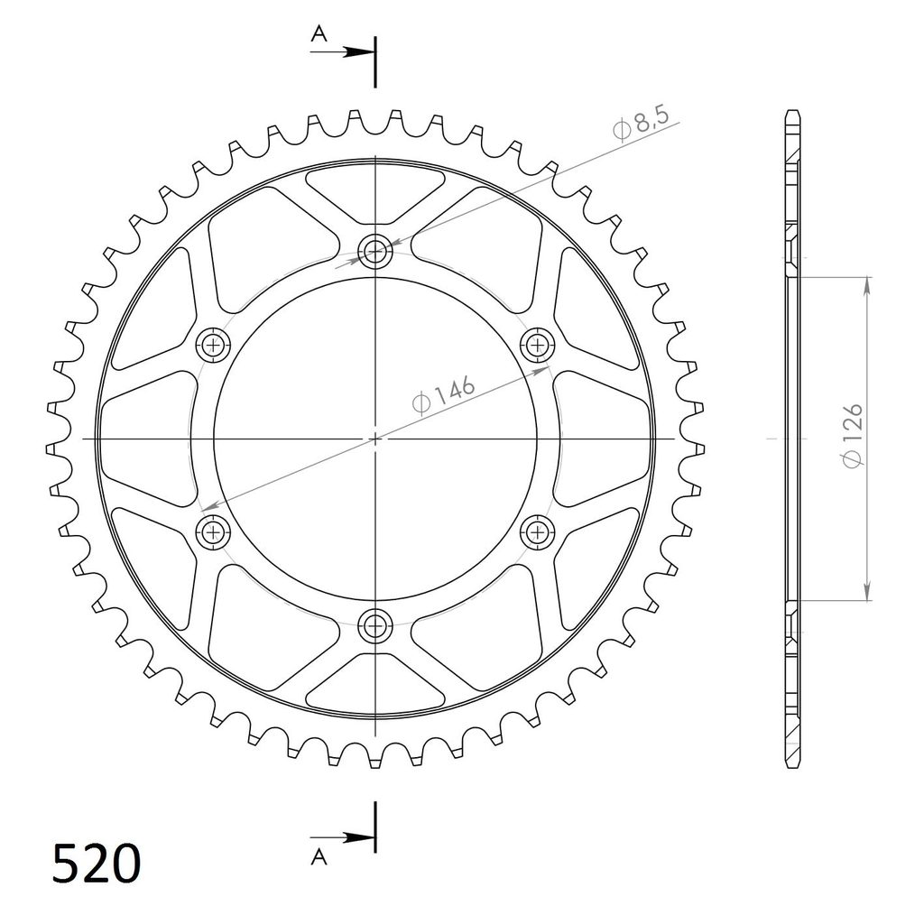 Stronger teeth for up to 10% longer chainkit lifetime. Rear sprocket 49z, chain 520. Više informacija