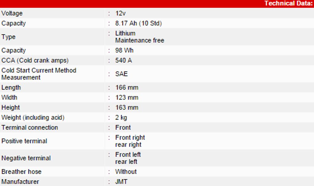 | Only 1/3 of the weight of a standard lead-acid battery | da |