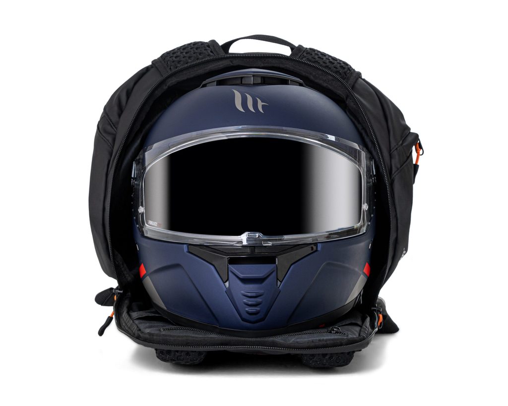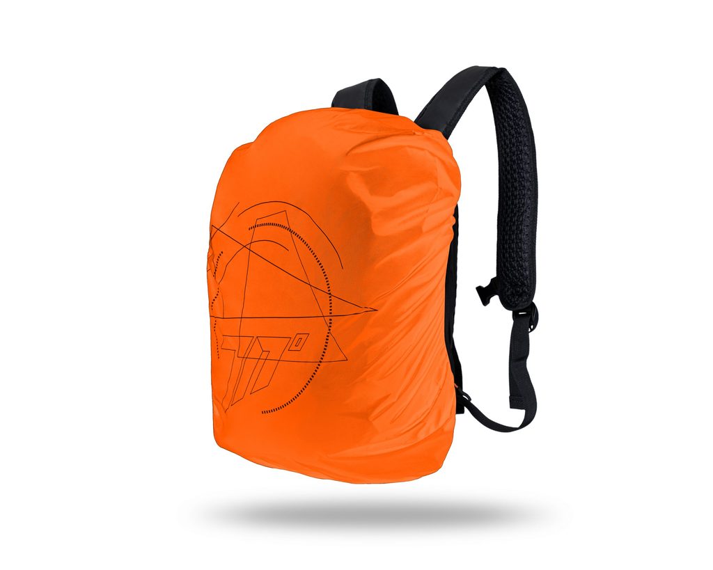 Praktičan protuprovalni ruksak od 28 litara, minimalističkog i elegantnog dizajna, napravljen za nošenje kacige i još mnogo toga. Glavni pretinac sa stražnjim patentnim zatvaračem, s prostorom za kacigu koja pokriva cijelo lice, otvaranje na stražnjoj strani s iznimno širokim pristupom. Također ima pregradu za dokumente, laptop ili tablet i džep s patentnim zatvaračem. Veliki prednji džep za druge stvari. Izrađen od vodootpornog PU laminiranog poliestera s patentnim zatvaračima, vodootporan. Brzo podesive naramenice. Prsni remen podesiv i po visini. Narančasta vodootporna navlaka i reflektirajući detalji. Podstavljene i prozračene naramenice za leđa i ramena za maksimalnu udobnost tijekom kretanja. Zatvarači za jednostavno otvaranje u rukavicama.