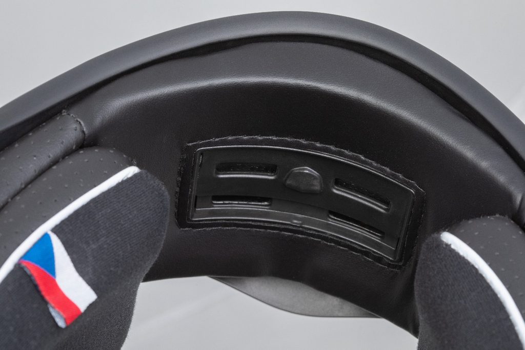 • Cutouts beneath the cheek pads for installing speakers and routing communicator cables