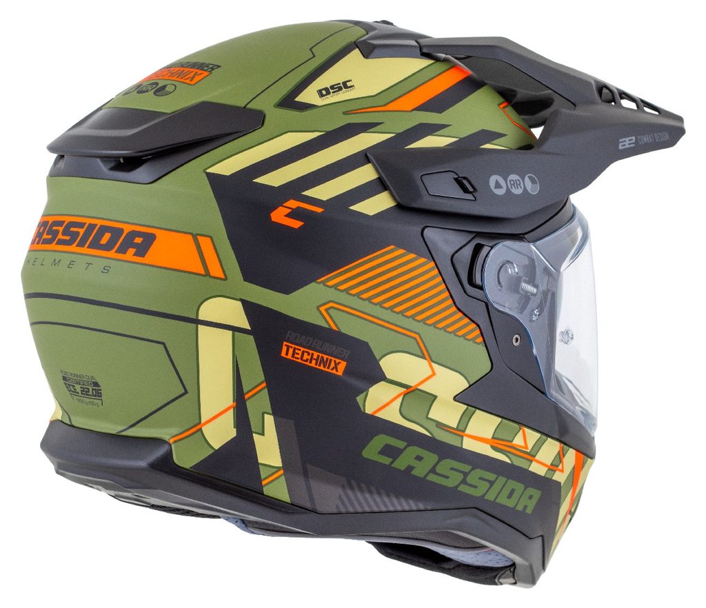 Motocross Helmet CASSIDA ROAD RUNNER TechniX green matt/ black/ orange/ grey/ black matt peak L
