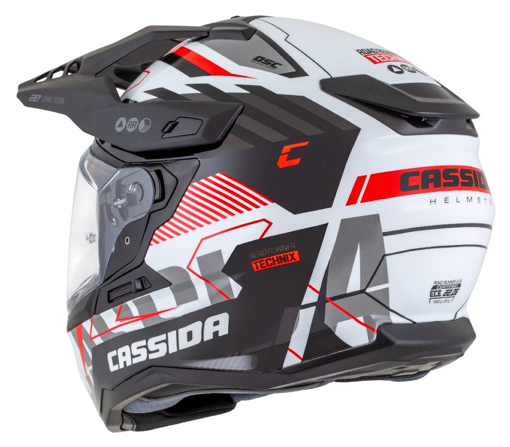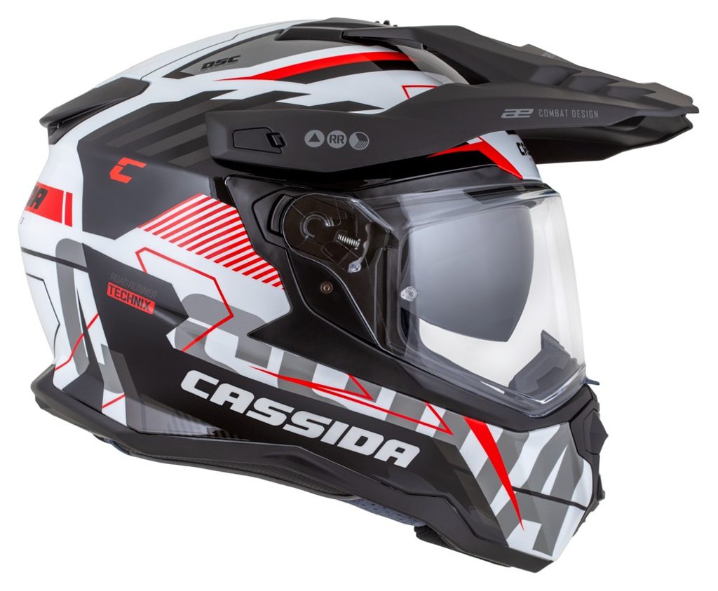 Motocross Helmet CASSIDA ROAD RUNNER TechniX white/ black/ red/ grey/ black matt peak L