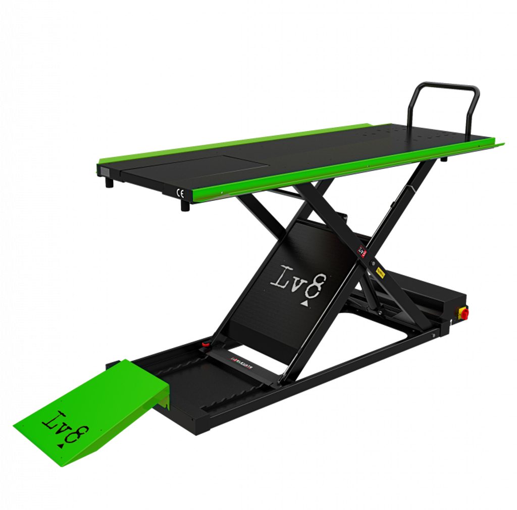 Motorcycle lift LV8 GOLDRAKE 400 FLOOR VERSION EG400O.G with air pump (black and green RAL 6018)