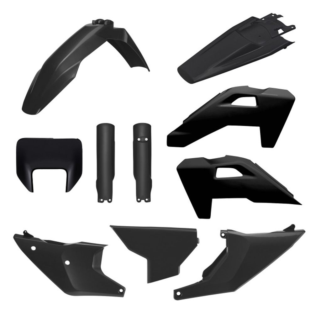 Includes all parts for a complete replacement. Polisport's Full Plastic Kits ensure a perfect fit and OEM quality on your dirt bike. Made from durable, flexible, and resistant materials that can withstand the hardest challenges of off-road riding.