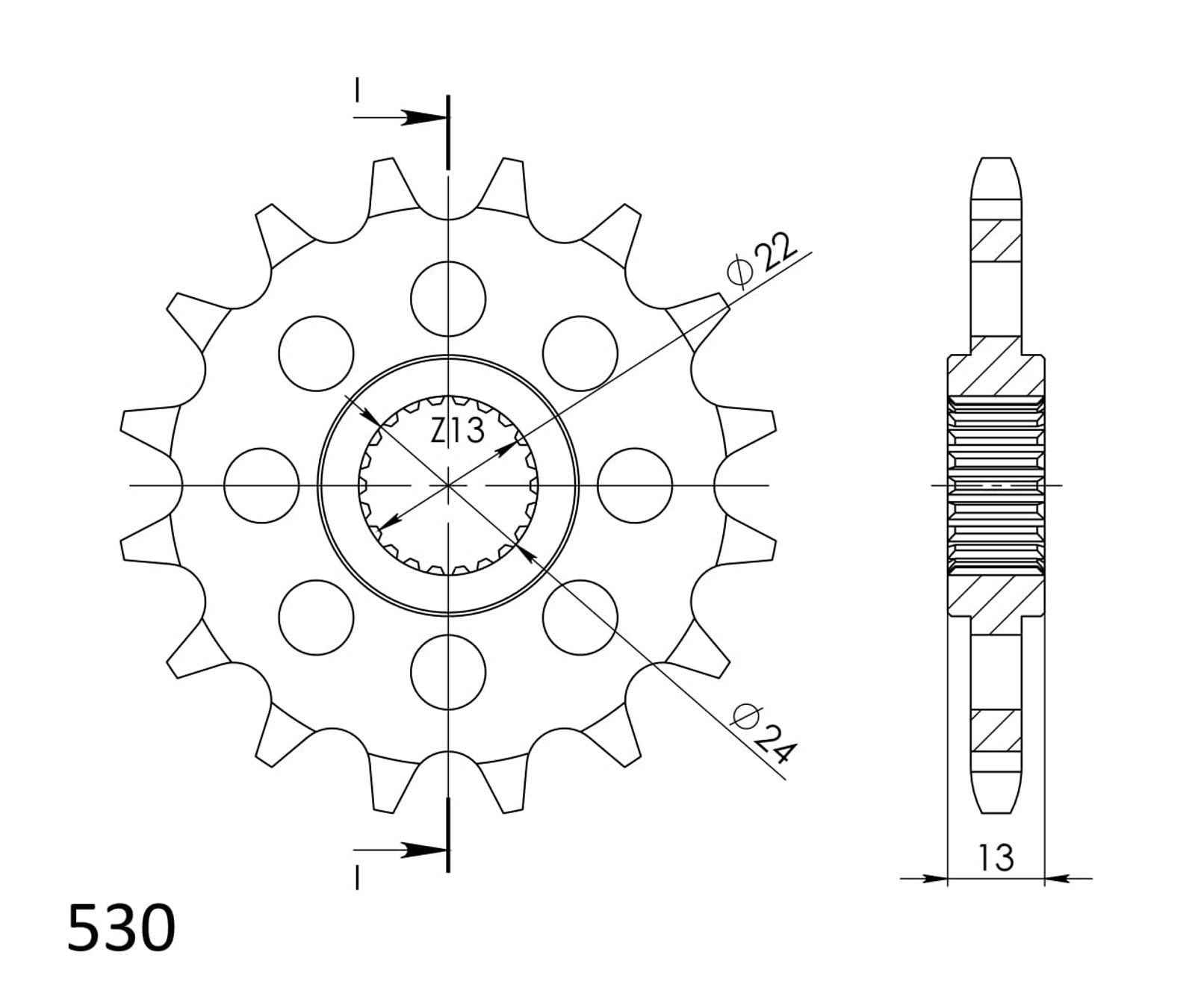 Every sprocket has weight reduction, with radial holes or radial slots (Forged models only) .