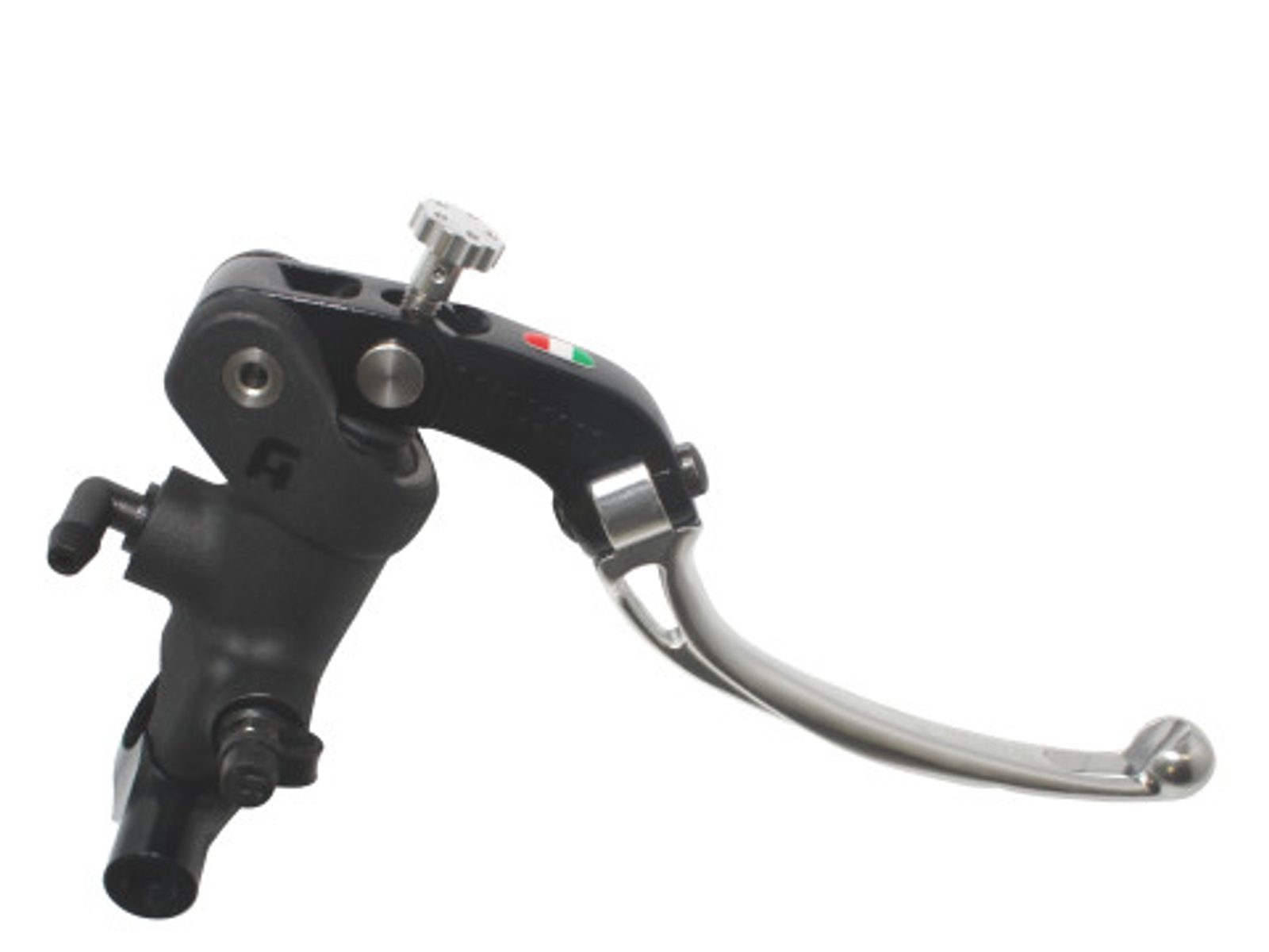 Accossato Radial Brake Master Cylinder For Motorcycles with 25,4mm diameter handlebarIn Forged Aluminium Black Anodyzing 19 x 18. The lever is colourf