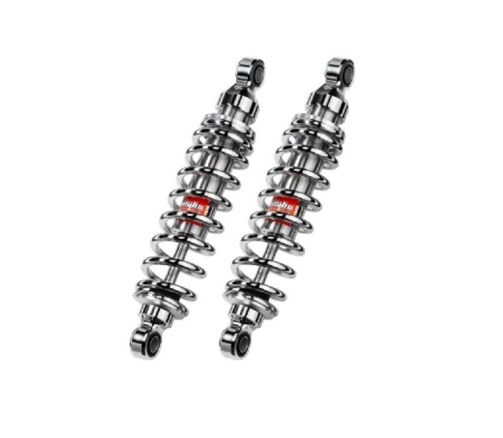 Designed for "classic" bikes twin rear shocks, specif adjustment for each application, available in different versions; "03" all chrome more classic models bike and "02V2" total black. This shock improves riding comfort and vehicle control thanks to its internal hydraulic system. The linear or progressive springs are chosen depending on the type of vehicle application. Stepless spring preload grant wide adjustment range and excellent performance, for use with only the rider or under full load.