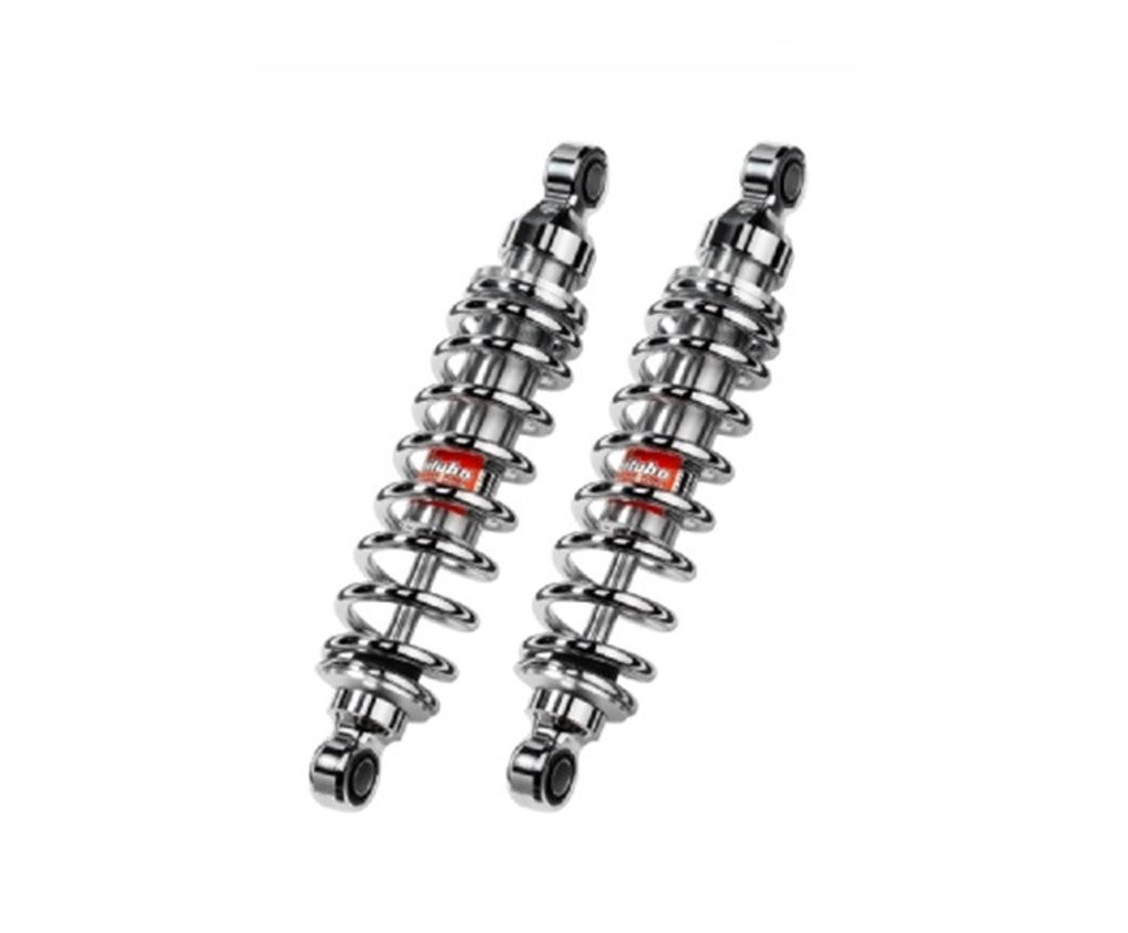 Twin rear shocks with same design of "WMB0", this shock has higher lenght (+10mm) of the original, adress to whom want ahigher setting of his own bike. Available in colour range "52V2" total black for more classic looks, and "53" all chrome version.