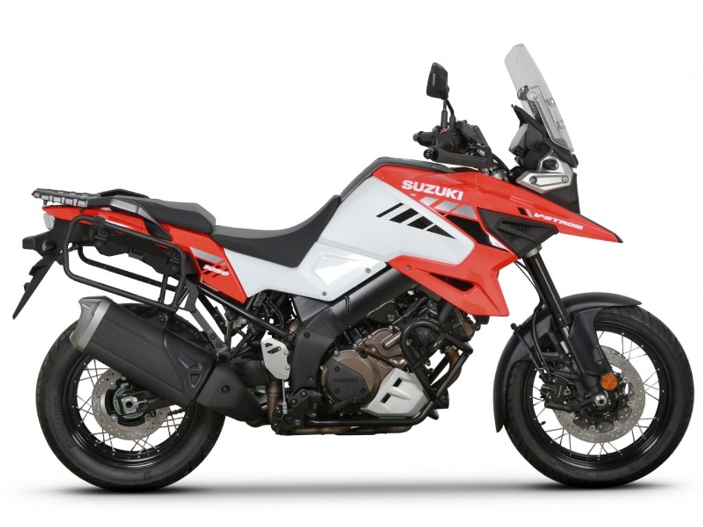 The complete set of cases SHAD TERRA includes aluminum top case TR48 with a capacity of 48L and aluminium left and right case TR36 with a capacity of 36L . The set contains everything you need to mount both suitcases to the motorcycle.