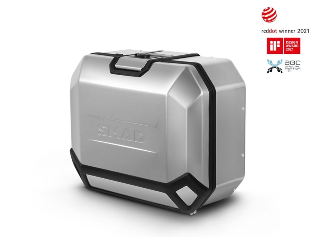 The complete set of cases SHAD TERRA includes aluminum top case TR48 with a capacity of 48L and aluminium left and right case TR36 with a capacity of 36L . The set contains everything you need to mount both suitcases to the motorcycle.
