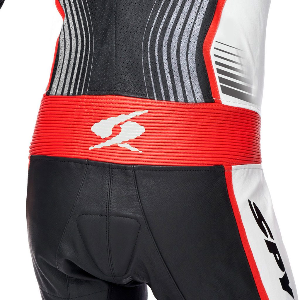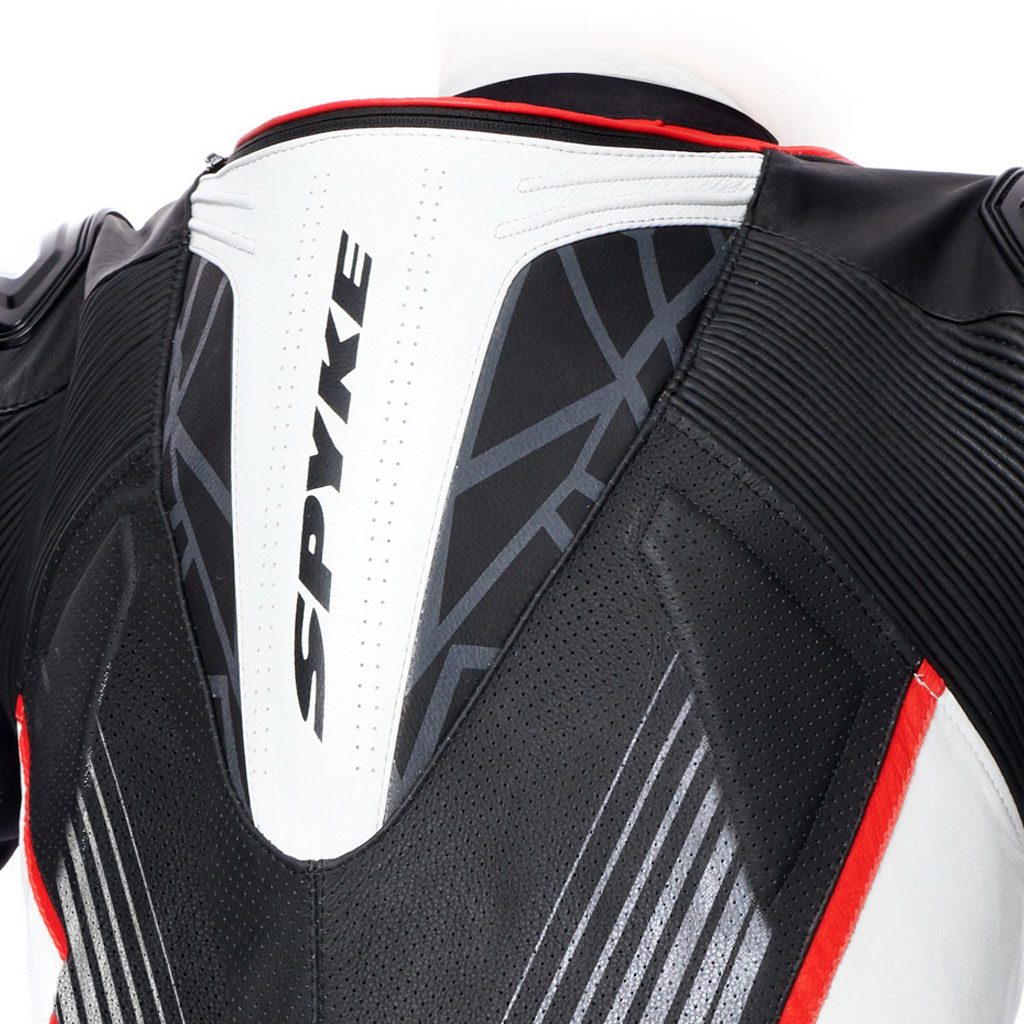 CE štitnici za ramena, laktove, kukove i koljena odobreni prema PN EN 1621-1:2012. Na stražnjem džepu za CE štitnik za leđa razine 2. Vanjski SPYKE logo štitnici za ramena i koljena. Vanjski, izmjenjivi klizač za lakat i koljena. Antishock bočne obloge. Sva područja šivanja s konstrukcijom sigurnosnih šavova prema standardu EN 17092:2020. Umetci od kože klokana na: ramenima, rukavima, bokovima, nogavicama. Perforirana koža na prednjem i stražnjem dijelu, rukavima i nogavicama za ventilaciju. Trkaća stražnja grba za poboljšane aerodinamičke performanse. Na stražnjoj grbi džep s rupom za Hydropack. Harmo umetci u laktovima, koljenima i leđima koja pruža veću udobnost. Rastezljiva tkanina za lijepo pristajanje. Rukavi u trkaćem obliku. Zakopčavanje patentnim zatvaračem na rukavima i donjem dijelu sa “flat lock” sustavom (autolocking & anti-floating klizač). Neopren na ovratniku za upijanje znoja. 1 unutarnji džep. Podstava koja se može skinuti.