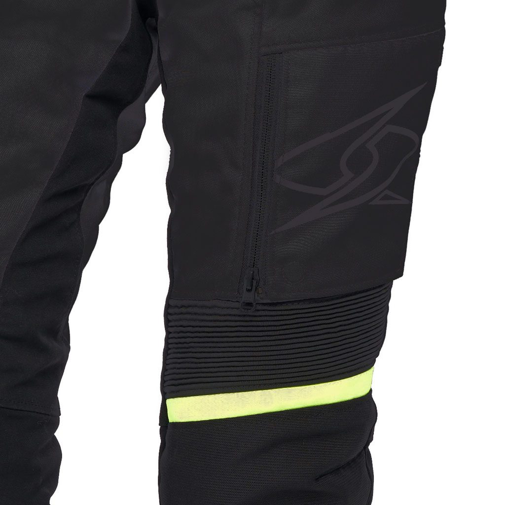 CE štitnici za koljena odobreni prema PN EN 1621-1:2012. Na bokovima džepovi za certificirane štitnike za kukove. Sva područja šivanja s konstrukcijom sigurnosnih šavova prema standardu EN 17092:2020. Sva područja šivanja za izradu sigurnosnih šavova prema standardu FprEN 17092 : 2018. Sklopivi lažni prednji džepovi za ventilaciju. Ventilirane bedrene ploče podesive patentnim zatvaračima i magnetskim gumbom. Podesiv struk s remenom i čičak trakom. Regulacija donjeg dijela nogavice s patentnim zatvaračem i čičkom. Reflektirajuće zone sprijeda i straga. Reflektirajući u skladu sa standardom EN 20471. Mrežasta antistatička i antibakterijska podstava s ekstra mekanom završnom obradom za dobar osjećaj izravnog dodira kože. Gumbi s logotipom SPYKE. 2 funkcionalna prednja vodootporna džepa. Zatvarač za spajanje s jaknom. Kratki patentni zatvarač i stražnja strana i kopče sprijeda za tregere. Odvojiva unutarnja membrana s toplinskom oblogom.