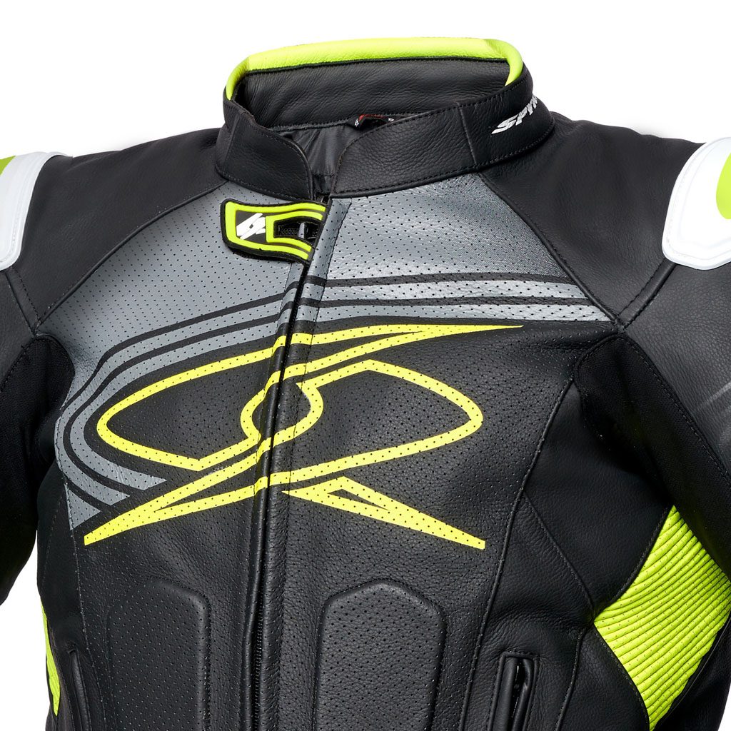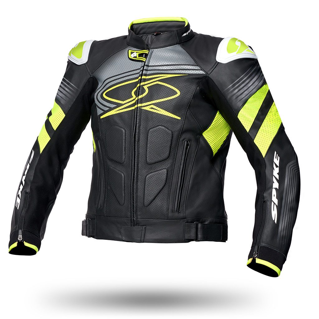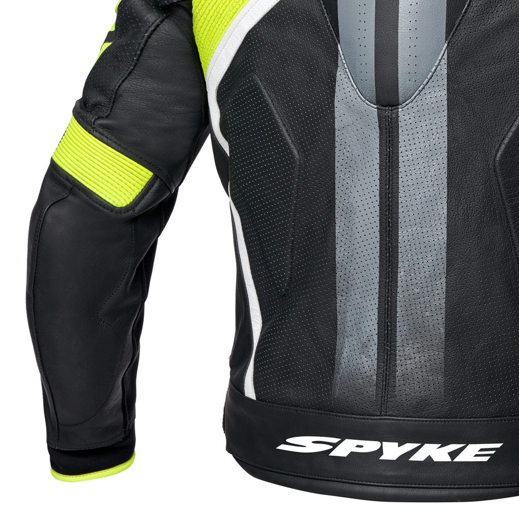 CE štitnici za ramena i laktove odobreni prema PN EN 1621-1:2012. Na stražnjem džepu za CE štitnik za leđa razine 2. Vanjski štitnici za ramena s logotipom SPYKE. Sva područja šivanja s konstrukcijom sigurnosnih šavova prema standardu EN17092:2020. Trkaća stražnja grba za poboljšane aerodinamičke performanse. X-STRETCH paneli na bočnim stranama i unutarnjim rukavima. Rukavi trkaćeg oblika. Umetci za harmoniku na laktovima i leđima. Patentni zatvarači s automatskim zaključavanjem na rukavima. Neoprenske manžete za zglobove. 2 vanjska džepa. Perforirana područja sprijeda, straga i rukava za ventilaciju zraka. Podešavanje dna pomoću remena i čičak trake. Termički uklonjivi poplun s džepom za mobitel i dokumente. Zatvarač za spajanje.