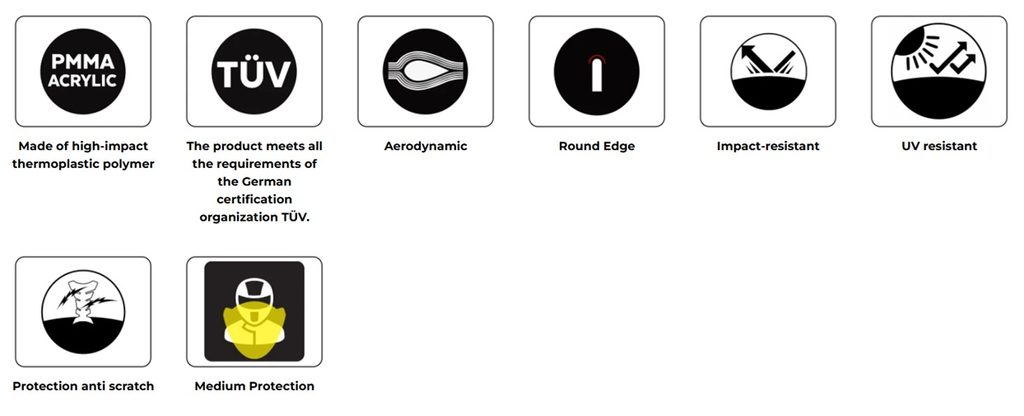Designed for the most competitive models of the market, Puig manufactures the piece in 4mm PMMA (Polymethylmethacrylate). It is impact resistant and with great aerodynamic capacity.